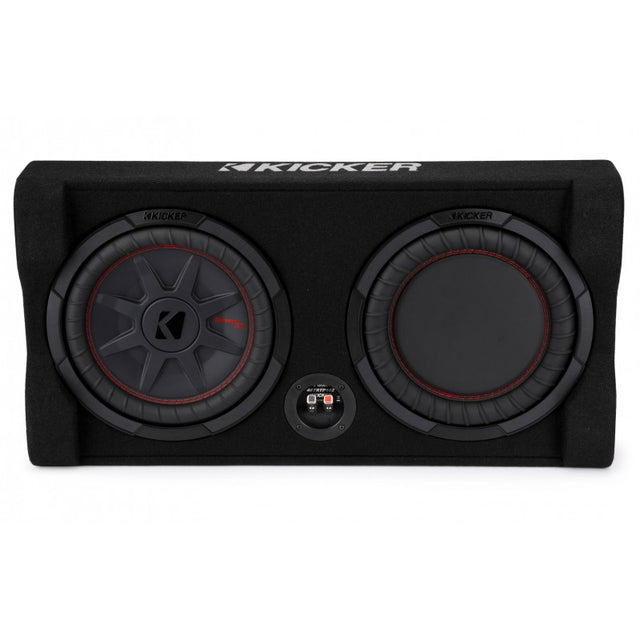 The CompRT Down-Firing 10-inch Subwoofer Enclosure comes loaded with a passive reFLEX subwoofer and KICKER CompRT sub, then carpeted and loaded with a single 2-Ohm terminal. Covered in stylish black carpeting and built with thick MDF, these tough enclosures take serious power without taking up needed space.