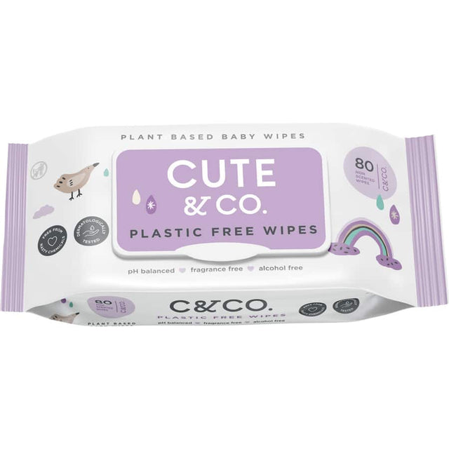 Cute & CO. 100% plastic free, plant based baby wipes.