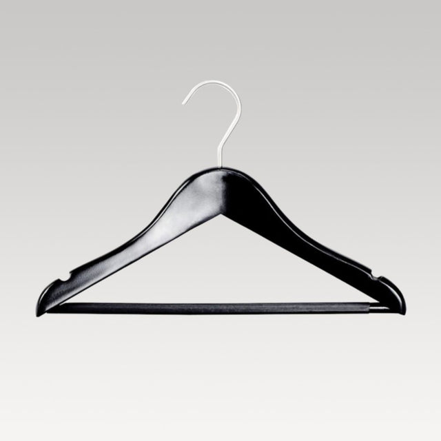 Coat Hanger - Wooden with Anti Slip Bar (Black)