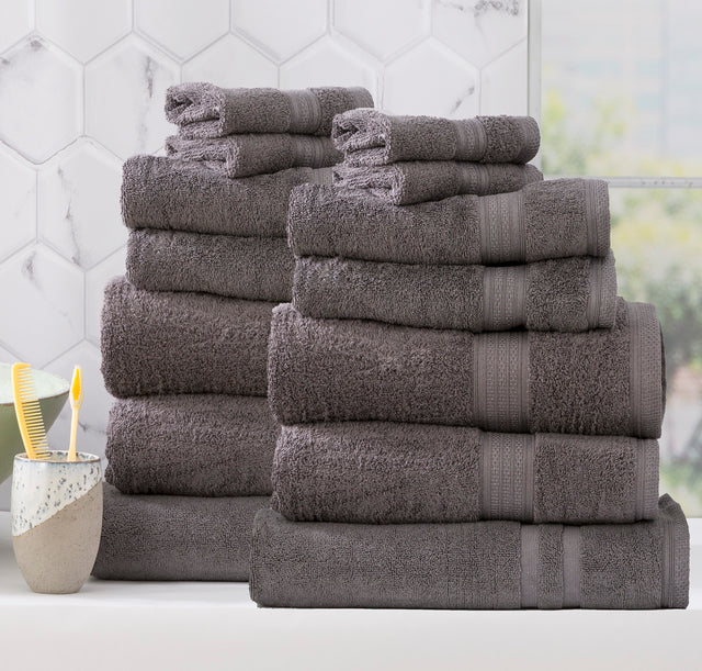 Renee Taylor Stella 650 GSM Super Soft Bamboo Cotton 14 Piece Charcoal