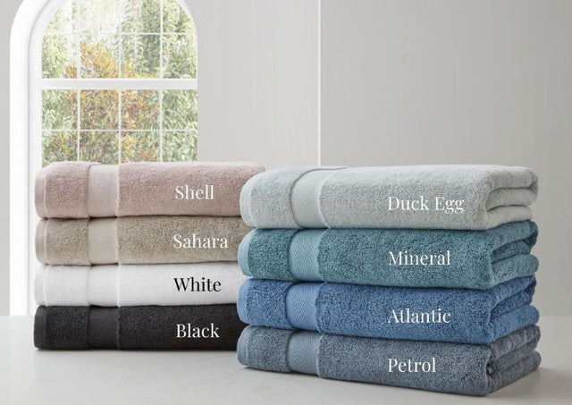 Delightfully plush, soft to the touch and extremely absorbent; these thick towels feature a woven band and are available in eight colours.