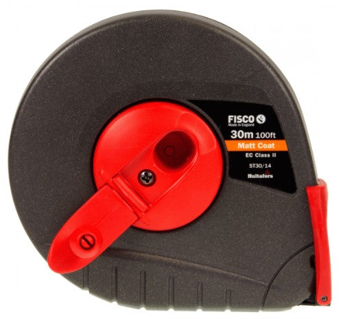 The FISCO Tape Measure 30m is the ideal tool for precision measuring tasks, catering to both professionals and DIY enthusiasts. Designed with an ergonomic case, it combines style and utility. Its robust construction, with an impact-resistant ABS case, ensures durability, especially in demanding work environments. The steel tape features a whitecote polyester coating for smooth, accurate measurements. Effortless tape retrieval is made possible by the easy-winding polymer center and push-button handle. Enjoy seamless measurements with the triple action end-loop, which includes a reliable fold-in claw for secure anchoring. The ABS belt clip on the rear keeps the tape measure easily accessible while you work. With a length of 30m (100ft) and blade width of 10mm, it's perfect for both small and large projects, making it essential for carpenters, builders, and home improvement enthusiasts. Invest in the FISCO Tape Measure 30m for exceptional value and precise, easy measuring tasks.