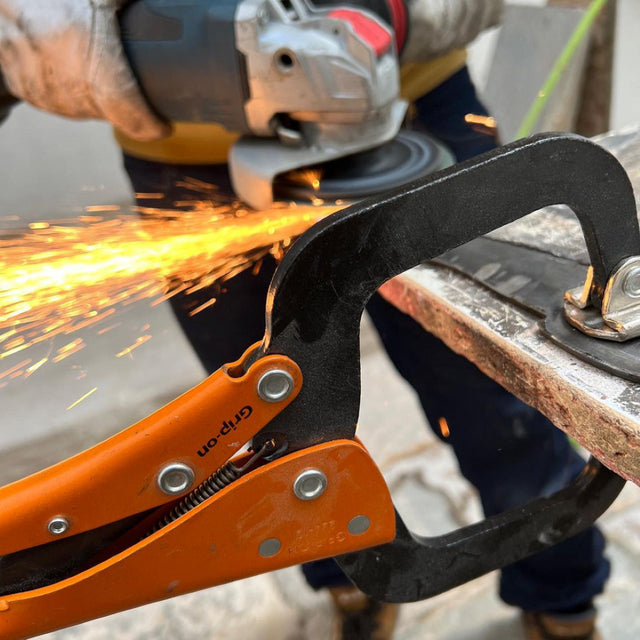 Introducing the GRIP-ON 300mm C-Clamp with Swivel Pads — the ultimate tool for woodworking, metal fabrication, and DIY projects! This versatile C-Clamp features knurled swivel pads that ensure a secure grip without slipping, protecting your workpiece from damage. One of the standout attributes of this clamp is its one-handed operation, allowing you to work faster and more efficiently compared to traditional bar-type clamps. The wide and deep jaw profile clears obstacles effectively, making it perfect for tasks that require clamping at long distances. Engineered for comfort, the ergonomic design fits snugly in your hand, while the no-pinch, easy-release mechanism offers additional safety during use. The GRIP-ON C-Clamp is constructed with superior-quality forged steel jaws, ensuring durability and reliability over time. Its corrosion-resistant epoxy paint coating is 20 times tougher than nickel, giving you peace of mind whether you're welding, assembling furniture, or tackling general mechanics work. With adjustable jaw openings and a clever concave profile for better push-pull control, this C-Clamp is the tool you didn't know you needed. Optimize your workspace with the GRIP-ON 300mm C-Clamp with Swivel Pads, the essential choice for both professionals and DIY enthusiasts alike!