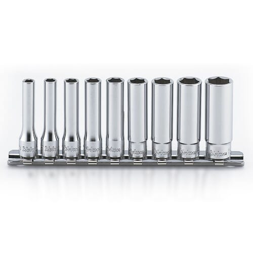 Koken RS2300A Deep Socket Set On Rail 6pt 9pc 1/4"Dr 3/16-1/2"