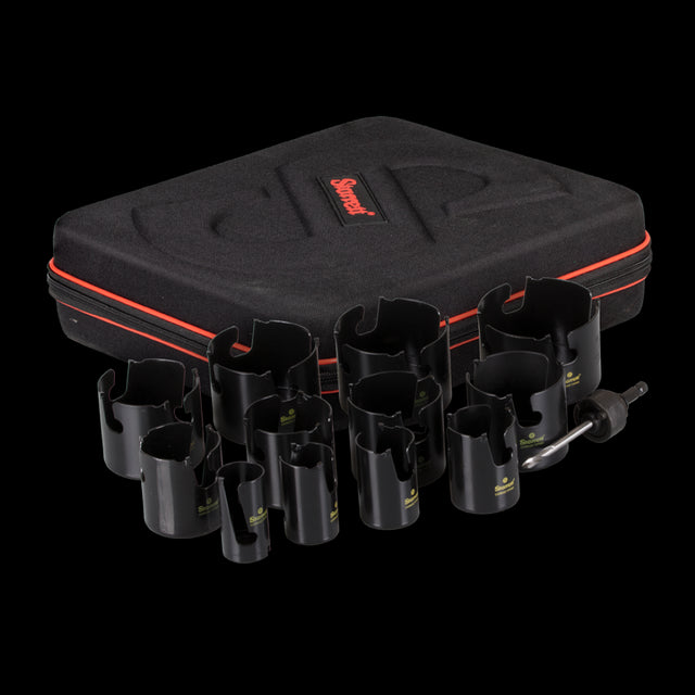 Introducing the STARRETT TCT Holesaw Set - 13pc, the ultimate tool for precision cutting! This premium TCT (Tungsten Carbide Tipped) holesaw kit offers unmatched durability and performance, making it perfect for electricians, woodworkers, and DIY enthusiasts alike. The 13-piece set includes hole saws of varying sizes, allowing you to tackle any project with ease. Whether you're drilling through wood, plastic, or metal, these holesaws deliver fast and clean cuts. The versatility of this holesaw set is unmatched, providing you the flexibility to work on multiple applications. Housed in a compact, sturdy case, this holesaw set not only keeps your tools organized but also makes for easy transportation to job sites. Each holesaw is designed for quick setup and efficient cutting with reduced friction, ensuring that you can get the job done swiftly. Upgrade your tool collection with the STARRETT TCT Holesaw Set - 13pc, and experience the difference that quality makes in your drilling tasks. Enhance your craftsmanship and make every cut count! Get yours today at Smartfox NZ!