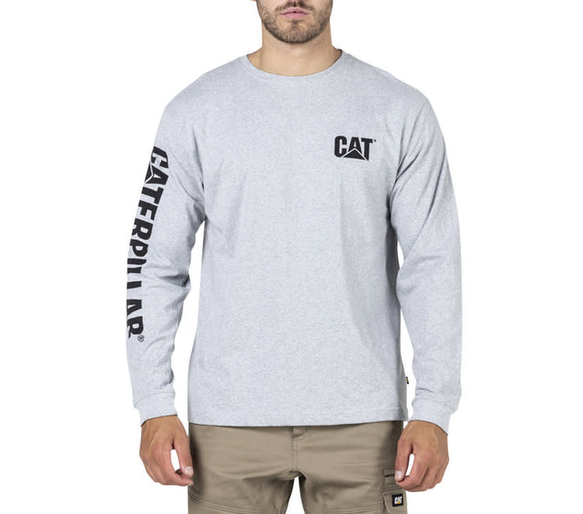 CAT, Trademark Banner Long Sleeve Tee - Heather Grey (Size: 3XL)