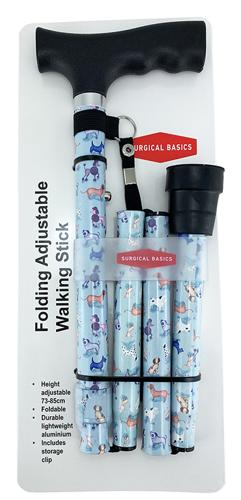FOLDING ADJ WALKING STICK 73-85CM POOCH WITH STRAP