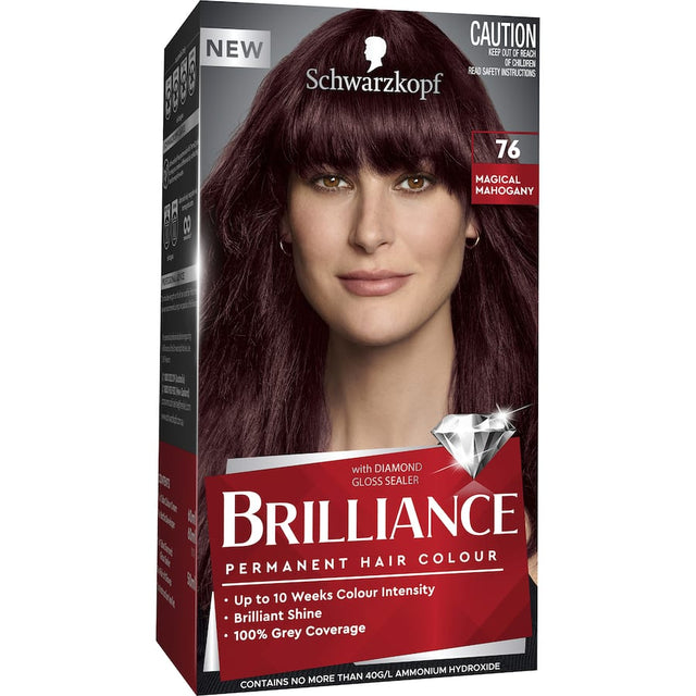 Schwarzkopf Brilliance 76 Magical Mahogany provides irresistible colour intensity for up to 10 weeks, with up to 100% grey coverage.
