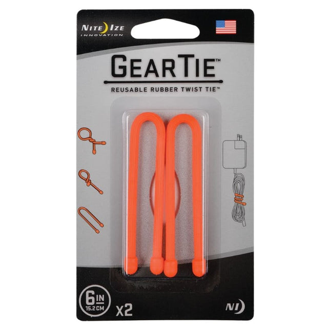 NITE IZE GEAR TIE REUSE RUB-TWST 6IN 2PK ORANGE