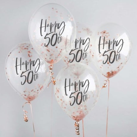 $9.20Unit price /UnavailableMetallic Mix Up Rose Gold 'Happy 50th' Confetti 30cm Latex Balloons - Pack of 5