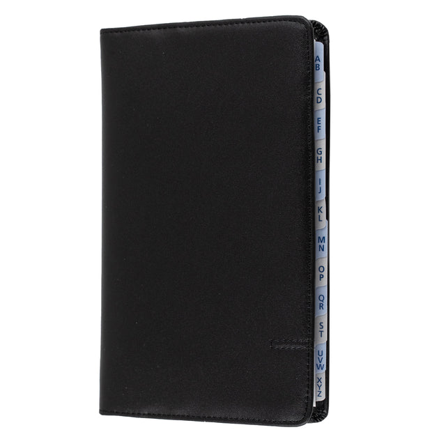 For the organised consumer on the go who needs portability, sleek and stylish looks, yet minimal weight and unwanted paper baggage. Complete with an undated Week to View diary, A-Z mylar tabbed telephone address section and pen loop.
