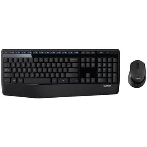 OVERVIEW: Logitech MK345 Comfort Wireless Keyboard and Mouse Combo - USB Wireless RF 2.40 GHz Keyboard - Black - USB Wireless RF Mouse - Optical - 3 Button - Scroll Wheel - Black - On/Off Switch Hot Key(s) - Right-handed - AAA, AA - Compatible with PC