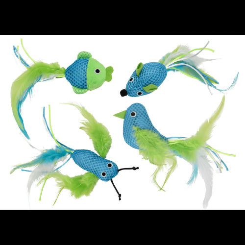 Feline Clean are peppermint scented toys that help promote dental health and are enhanced with catnip to stimulate playful behavior. Their multiple textures massages gums to help remove tartar. They are available as an assortment of goldfish, butterfly, bird and mouse.