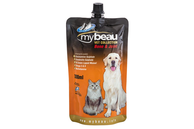 MYBEAU© Bone & Joint is a unique ?world first? vitamin and mineral supplement scientifically formulated and validated by Massey University New Zealand....With added Glucosamine Sulphate, Chondroitin Sulphate and NZ Green Lipped Mussel as key ingredients that have been proven to provide the building blocks for joint health & vitality in dogs and cats of all life stages....MYBEAU© Bone & Joint also contains the important Omega 3 & 6 Essential Fatty Acids (EFA) along with both fat & oil soluble vitamins for replenishing and maintaining a healthy liver....Antioxidants provide protection from free radicals and assists in the healing processes....All the essential nutrients found in MYBEAU© Bone & Joint are protected by the unique formulation allowing for a 99.5% absorption that is fully utilised by the body....For an optimum healthy coat, feed in conjunction with palaMOUNTAINS MYBEAU© Skin apply equal amounts to the suggested quantities on the feeding chart.