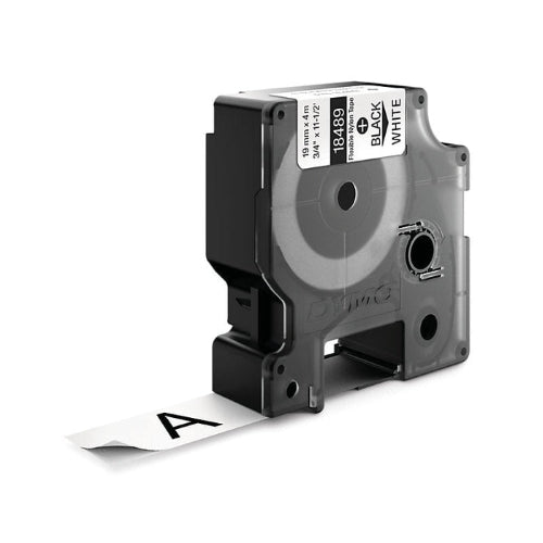 Dymo Rhino Label Flex Nylon 19mm Black on White flexible Nylon labels for use on wires, cables, curved and textured surfaces. Tear-proof material. UL recognized as a component to UL 969. RoHS compliant with a temperature Rating -25.56C to +80C.