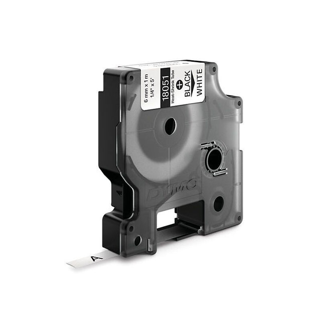 Dymo Rhino Indstrial Heat Shrink Tube 6mm Blk/Wht is made of industrial grade polyolefin and features a 3:1 heat shrink ratio for printing on tubing. Meets MIL-M-81531, MIL-STD-22G, SAE-DTL-2353/5 (Class 1&3). Temperature Rating -19C to +135C.