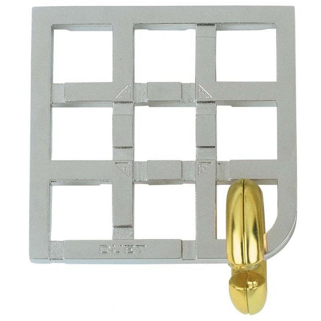 Huzzle puzzles, provides puzzles for adults which are solved using a blend of inspiration and logic. The challenge is to take apart and put back together this Duet puzzle. You will need your hands and your brain on board to solve the Huzzle puzzles! At first glance, it looks as if there is only one ring hanging from the grid but there are in fact, two rings attached with a magnetic force. Can you separate the rings from the grid and return them to their original positions? After you conquer that, next, try also to fit the two rings at the four-crossing points on the grid indicated by the numbers. The level of difficulty increases as players aim for crossings with higher numbers.
