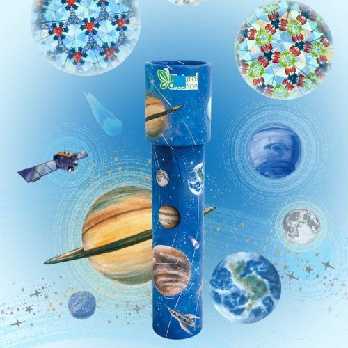 With a magic kaleidoscope, a whole new world opens up - filled with colors and patterns. Each time the tube is turned, shapes and figures shift places, creating new symmetrical designs that fascinate both children and adults. A kaleidoscope invites immersion, play and wonder - and quickly becomes a little journey into the world of imagination. Here shown in a dark blue variant decorated with planets and stars.