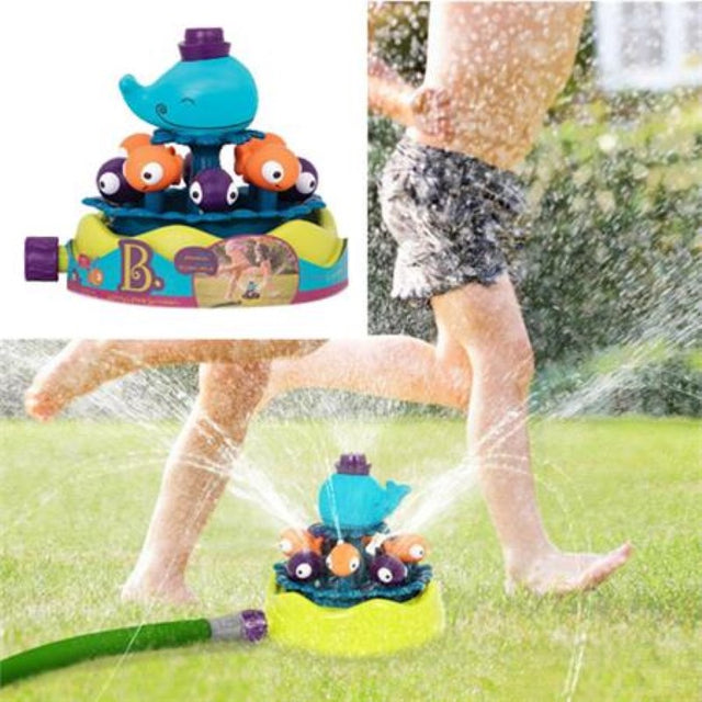 Compatible with all standard water hoses. Easy and quick to set up. Ready, set, whirl! Water sprays from the fishies, for a whimsical water show. Sure to keep kids cool and running around for hours!