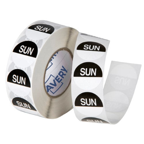 Avery Labels Sunday Round Day 24mm Black White 1000 Roll