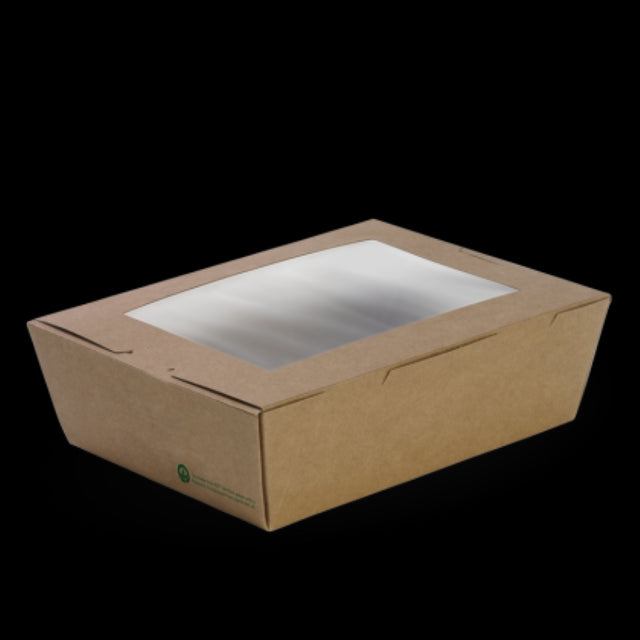 Box Lunch Cardboard Window PLALined Large Brown 197x140x64m - Biopak - 50PC