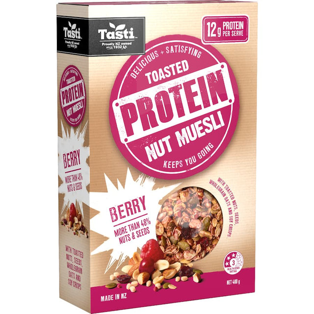 This delicious blend is crafted with a generous helping of toasted nuts, nutritious seeds, wholegrain oats, soy crisps and a sprinkling of dried cranberries and raspberries. Providing 12g protein in every serve, while delivering essential fibre and energy.