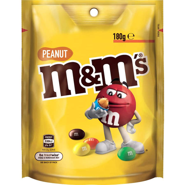 Take home the fun with m&m's peanut. ; This chocolate favourite features milk chocolate with a roasted peanut, coated in a colourful crisp shell. ; They are perfect to be enjoyed with your favourite movie, brought to share at a party or added to brighten a lolly buffet at your next gathering. ; Add some fun and colour to your day with m&m's peanut!.