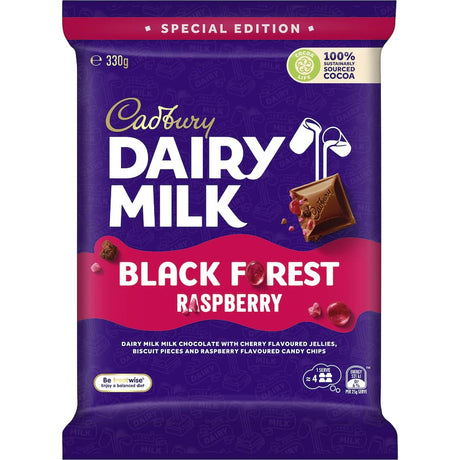$10.80Unit price /UnavailableCadbury Dairy Milk Chocolate Block Black Forest Raspberry Large block 330g