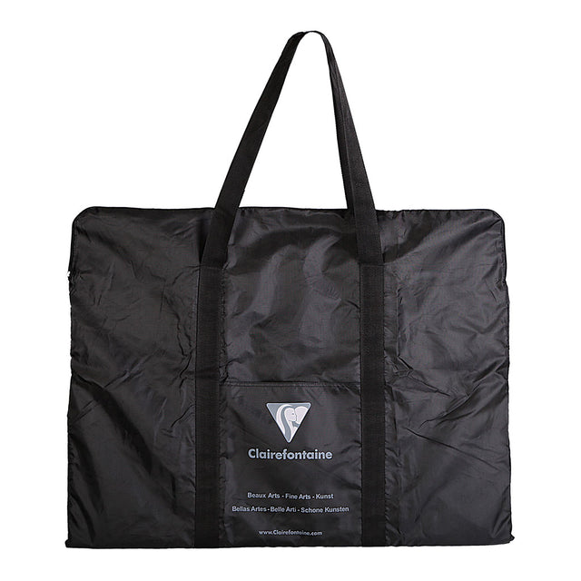 This black polyamide bag is designed to carry and protect an art folder. Its wide straps and zip closure make it a very durable portfolio. Small front pocket is ideal for carrying a sketchbook. A2 size. Black colour.
