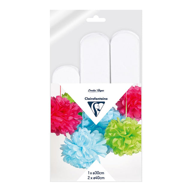 Clairefontaine Crepe Pompoms White, Pack of 3