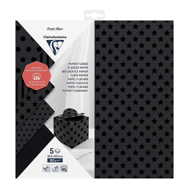 Clairefontaine Cutting Paper Flocked 185g 30.5x30.5cm, Pack of 5