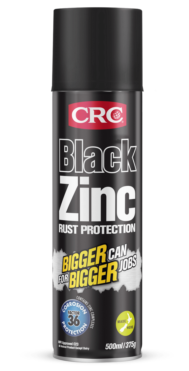 CRC Coloured Zinc s unique formulation combines superior rust inhibiting properties of zinc with a tough but flexible enamel coating. High levels of anti-corrosive zinc complexes are embedded in a resin system which forms a quick-drying highly-protective enamel coating with excellent adhesion to bare metal. Provides a satin top-coat finish that resists undercutting and blistering from corrosion by forming an effective corrosion barrier.