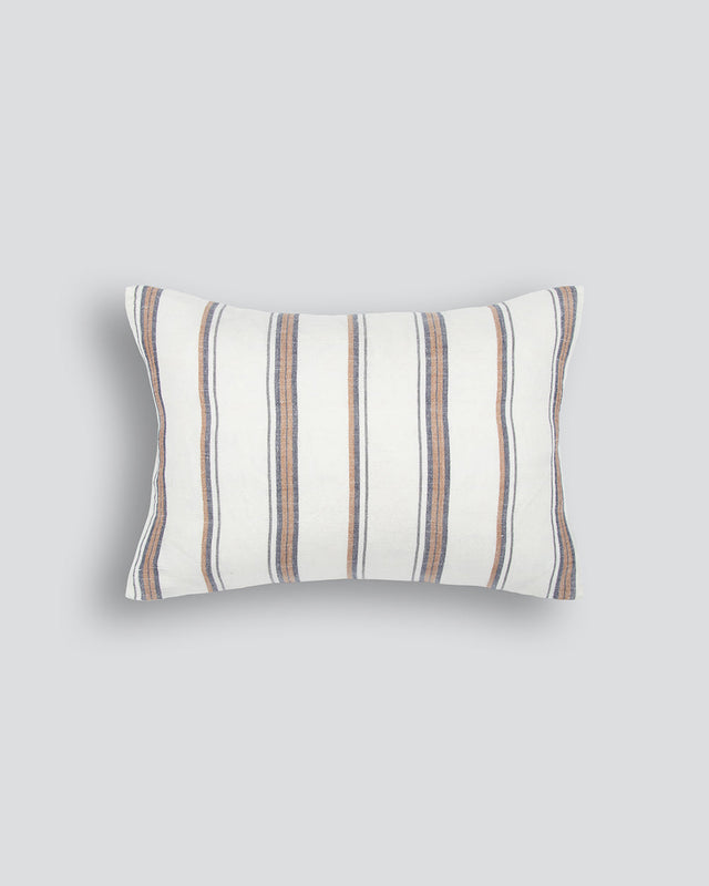 Inspired by the relaxed, coastal style of the Hamptons, this cushion will appeal to those wanting to create a timeless and sophisticated space. A gorgeous, handwoven linen/cotton stripe in hues of cobalt, ivory and tobacco, with a soft-washed finish.