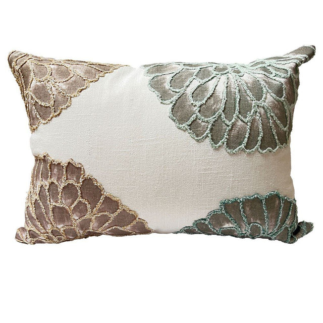 Soft images of seasonal florals and watercolour paintings are the inspiration of this design. Layers of blue and natural earth tones add an almost a sculptural visual effect and the tufted detailing is sublime. Polyester inner. 35x50cm