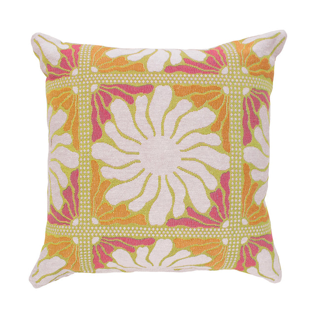 The Zinnia design features a large floral design. This patterned cushion will look great on a couch or on a bed or even on a chair in your alfresco area! It is made from a strong woven tapestry fabric that is comfortable to sit on, and easy to machine wash. A large portion of the fabric is made using recycled cotton, which is great for an eco-conscience shopper and coordinating throw blankets are also available while stocks last.