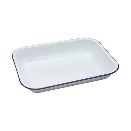Bake Pan, Enamelware, White, 34cm (E-S93007) Bake pans are ideal for roasting meat and are deep enough for lasagne etc. 34cm x 28cm x 5cm