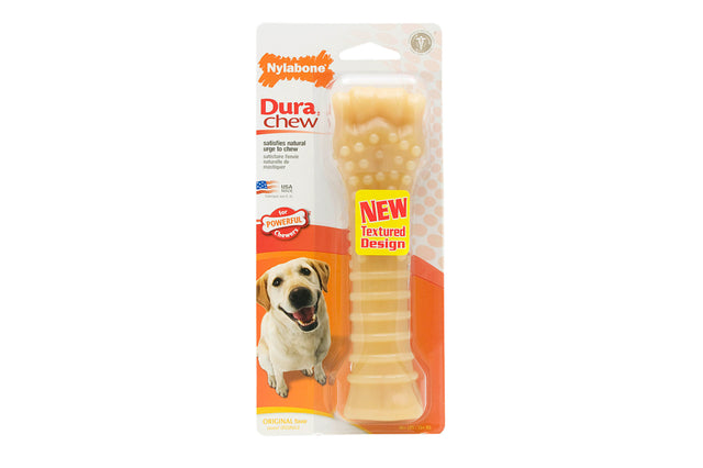 Nylabone - DuraChew Textured Bone Satisfies natural urge to chew For powerful chewers Discourages destructive chewing Helps clean teeth Fights boredom Provides long-lasting enjoyment Original Flavour For dogs 23kg +