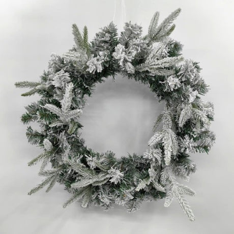 Artificial Snowy Mixed Pine Wreath with LED Light (24")