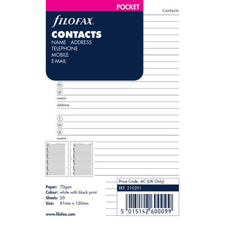 $9.50Unit price /UnavailableFilofax Organiser Refill Pocket Contacts White