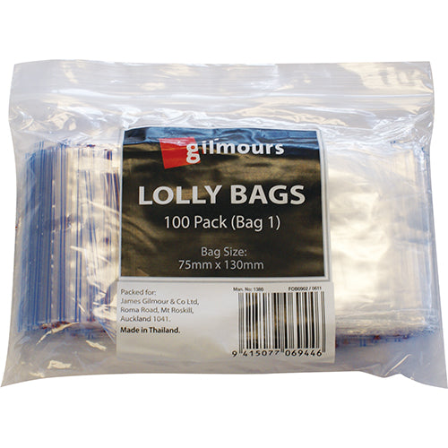 Gilmours Lolly Bags 75mm X 130mm 100ea