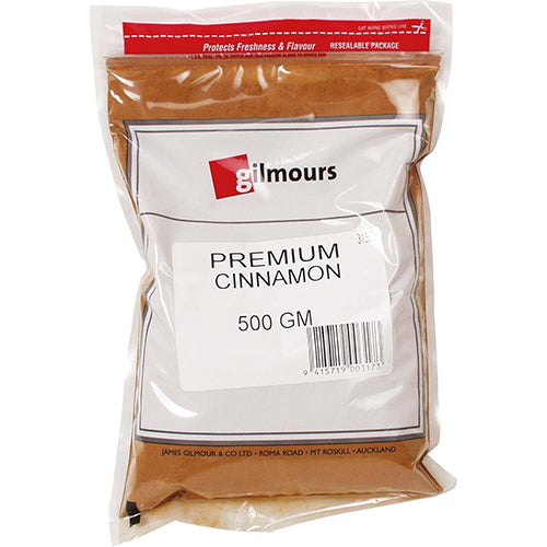 Discover the rich aroma and versatile flavor of Gilmours Premium Cinnamon, expertly packaged in a generous 500g bag. Our premium cinnamon is perfect for enhancing your culinary creations, whether you're baking delicious desserts, adding a sprinkle to your morning oatmeal, or brewing a cozy cup of spiced tea. Sourced from the finest cinnamon bark, this high-quality spice is known for its exceptional taste and numerous health benefits. Cinnamon is not only a delightful addition to sweet and savory dishes but also a powerful antioxidant that may support your overall wellness. The finely ground texture of Gilmours Premium Cinnamon ensures easy blending into recipes, making it a staple in your kitchen pantry. Add a dash of warmth and sweetness to your dishes and enjoy the amazing health properties packed into every spoonful. Perfect for baking, cooking, or even as a supplement in your daily routine, this cinnamon is a must-have for any home chef. Shop now and bring the comforting taste of Gilmours Premium Cinnamon to your home. Experience the difference with each sprinkle; elevate your cooking and baking with this versatile spice today!