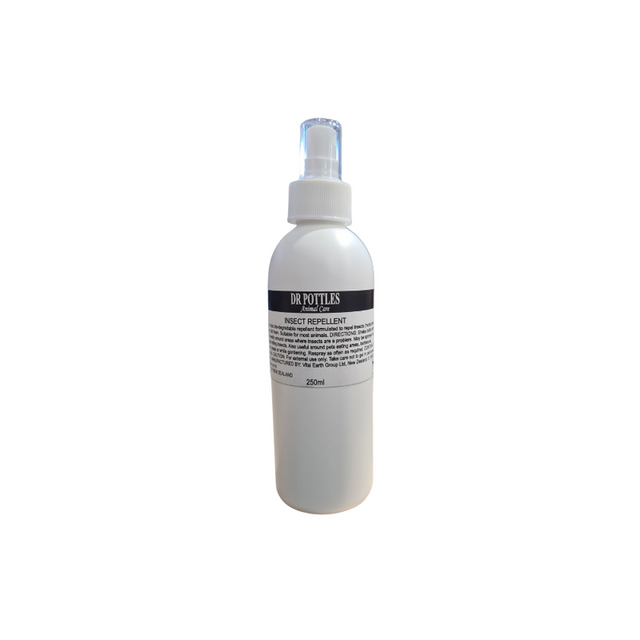 Dr Pottles Insect Repellent is a scent based product that has been formulated to be used on most animals, people & surrounding areas. Spray onto the coat, taking care not to spray into the animal's mouth, nose or eyes.