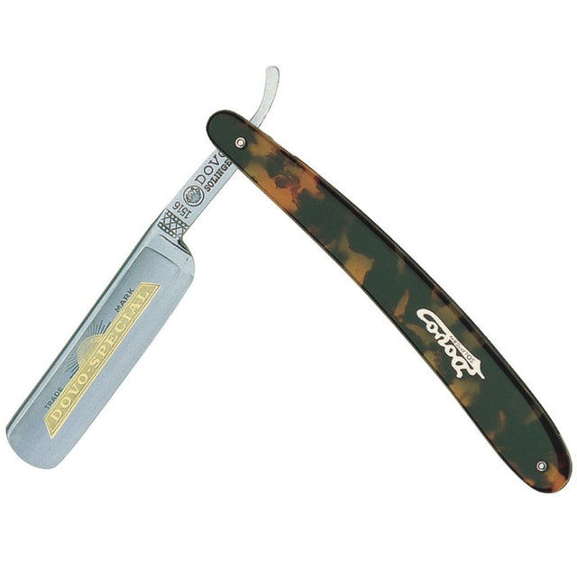 This stunning Dovo 'Special' Straight Razor features a simulated tortoiseshell handle and ornate blade