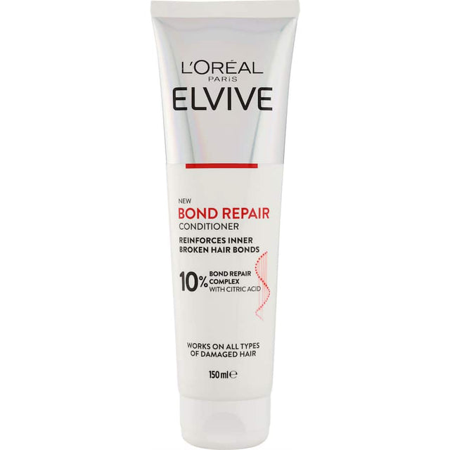 L’Orčal Paris Elvive Bond Repair Conditioner is powered by citric acid to penetrate beneath the hair surface to reinforce broken hair bonds while conditioning, improving hair manageability and softness.