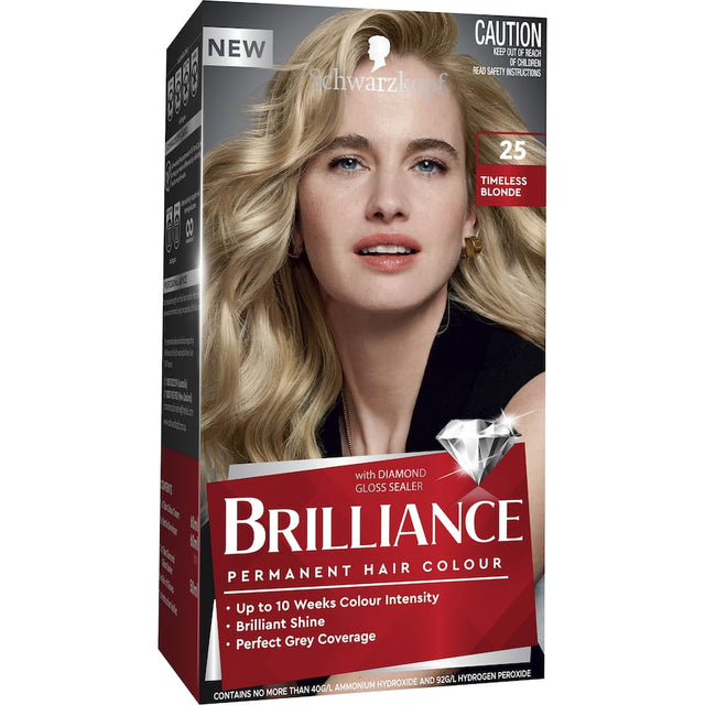 Schwarzkopf Brilliance 25 Timeless Blonde provides irresistible colour intensity for up to 10 weeks, with up to 100% grey coverage.