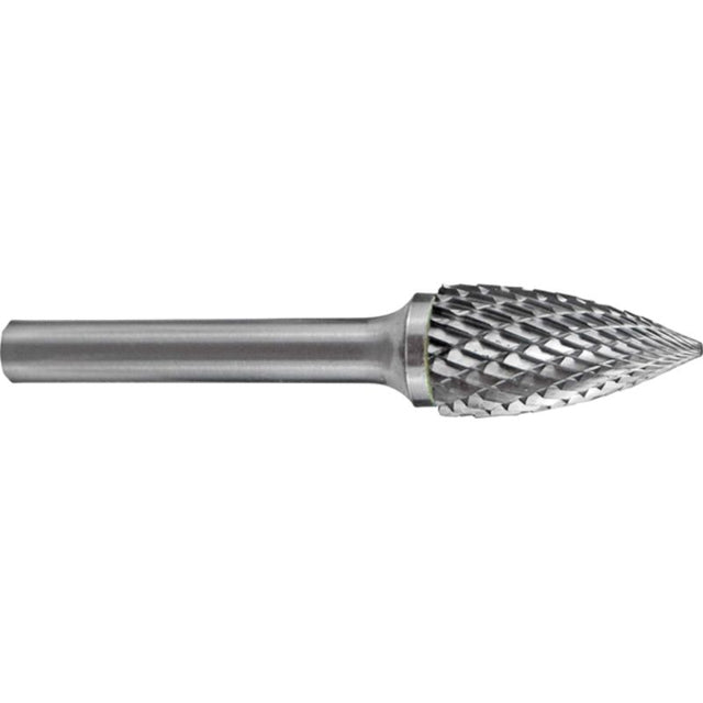 Introducing the Holemaker Carbide Burr 1/2x1inx1/4in Tree Pointed End DC - your ultimate solution for precision machining and material shaping. This high-quality double-cut carbide burr is specifically designed for durability and efficiency, making it an essential tool for both professionals and DIY enthusiasts. The unique tree-shaped pointed end allows for intricate detailing in various materials, including metal, wood, and composites. With a versatile 1/2 inch head diameter and a 1 inch flute length, this carbide burr is tailored to elevate your woodworking, metalworking, and hobby projects.