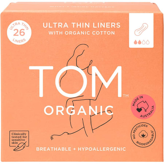 TOM Organic Ultra Thin Organic Cotton Liners are perfect for keeping you fresh throughout the day, any day of the month. Made wit chertified organic cotton, these liners are naturally hypoallergenic, breathable and biodegradable, making them perfect for sensitive skin.