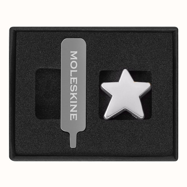 Add some sparkle to your notebook by attaching a symbol to the elastic closure. The Star in silver finish brings a unique touch to your notes and plans. Have fun creating a customized look or add a special symbol when you give a Classic Notebook or Planner as a gift. Made from Zinc Alloy.