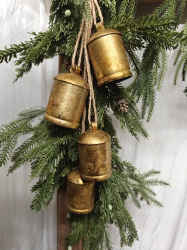 Ornament - Gold Metal Vintage Bells with Jute Hanging Rope (11cm X 6.5cm)