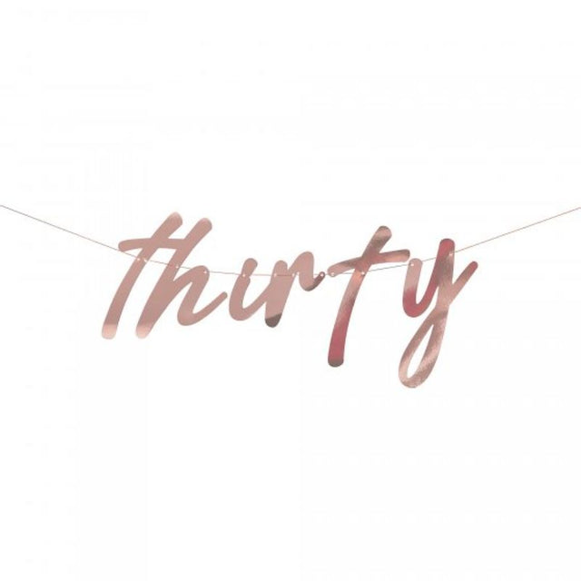 Each pack includes: 1 x Rose Gold 'Thirty' 30th Banner Paper Bunting Rose gold twine to hang measuring 1.7m